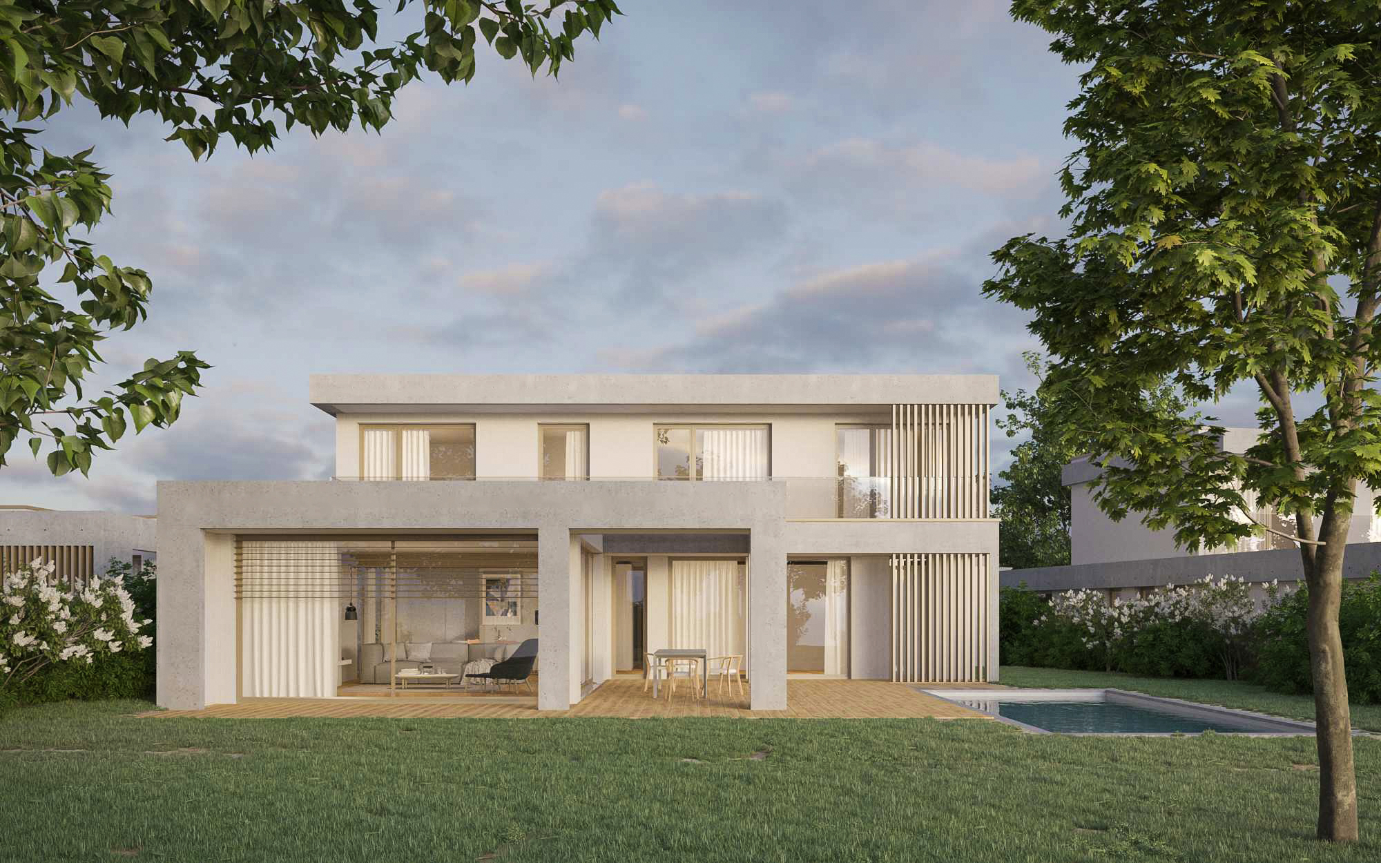 Des terrains plats et arborés d'environ 900 m² avec permis purgé pour une maison contemporaire d'environ 193 m².